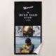 Best Papa Ever Père`s Day Keepsaké 4 Photo Black Beach Towel. L'arrière - plan est noir. Personnalisez avec quatre photos, le nom du père et l'année. Vous pouvez changer n'importe quel texte sur la serviette. Un cadeau parfait pour un père, un nouveau père ou un grand-père le jour du Père.