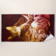 Montrez votre amour pour les félins avec cette serviette de plage kitty artsy ornée de MEOW en blanc.