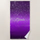 Serviette De Plage Métal brossé violet moderne avec Monogramme argent