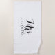 Cette serviette de plage minimaliste calligraphie script fantaisie est le cadeau idéal à offrir à la future mariée pour une douche nuptiale simple. Le design présente une belle police de calligraphie sur fond blanc.