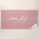 Mme serviette de plage personnalisée. Le design présente un script de typographie en caractères noirs en gras "mrs" sur un arrière - plan rouillé. Fait un cadeau parfait pour une lune de miel ou comme gardien pour les jeunes mariés. Personnalisez encore plus avec un nom.