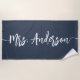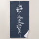 Célébrez votre nouveau statut de mariée avec cette serviette de plage bleu marine personnalisée avec votre nouveau nom en blanc lettré signature script avec le début et la fin swashes. Fait un grand mariage, une douche ou un cadeau de lune de miel.