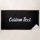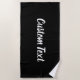 Cette serviette de plage noire a un script blanc comme texte d'affichage. Vous pouvez le modifier pour afficher du texte personnalisé.