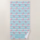 Modèle flamand rose mignon avec rayures bleues sur une serviette de plage blanche arrière - plan motif. Facile à personnaliser avec votre nom !