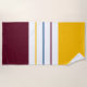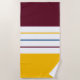 Cette serviette de plage moderne est ornée d'un motif automnal coloré à rayures blanches, jaune mauve et jaune ambre.