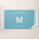 Le design personnalisé des serviettes de plage pour une escapade de fin de semaine pour filles dispose d'un prénom personnalisé dans l'écriture de script moderne encadré par des bandes côtières, avec texte personnalisé pour l'occasion. La couleur arrière - plan bleu aqua peut être modifiée. Visitez notre boutique pour d'autres options de couleurs.