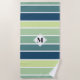 Serviette De Plage Monogramme à rayures bleues, vertes et blanches