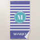 Serviette De Plage Monogramme à rayures tendance personnalisé