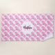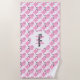 Les Enfants Personnalisent Cute Pink Pig Motif Girls Beach Towel. Personnalisez avec le prénom et monogramme avec la première ou dernière initiale dans un cercle blanc. Amusez les petits pigeons roses motifs en cercles blancs sur un arrière - plan rose.www.SamAnnDesigns.com
