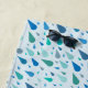 Serviette de plage bleu-pluie personnalisée avec monogramme personnalisé. De belles gouttelettes d'eau dans différentes nuances de bleu, turquoise et turquoise ornent l'arrière - plan bleu bébé. Customisez ce joli motif aqua avec votre nom ou votre nom de famille initial. Le design présente des gouttelettes d'eau captivantes de différentes tailles, chacune rendue dans un spectre de nuances de bleu apaisant qui reflète la beauté naturelle de l'océan et des rivières.