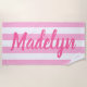 Serviette De Plage Monogramme de nom de script à rayures roses