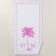 Cette serviette de plage amusante dispose d'un palmier côtier en rose vif et blanc. Personnalisez le monogramme avec votre choix d'initiales.