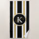 Serviette De Plage Monogramme Elégant Noir & Or Personnalisé