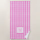 Serviette De Plage Monogramme En vichy plaid rose et blanc