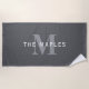 Serviette De Plage Monogramme et nom gris foncé moderne