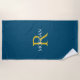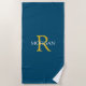 Serviette De Plage Monogramme et nom, Or et blanc, bleu océan
