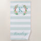 Ce design branché et amusant est orné d'un arrière - plan rayé blanc et menthe avec une couronne fleurie colorée. Personnalisez le design avec votre nom et monogramme ou autre texte. Utilisez les outils de conception pour choisir n'importe quelle couleur arrière - plan, modifier les polices de texte et les couleurs ou télécharger vos propres photos pour créer une serviette de plage personnalisée unique pour les enfants.