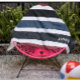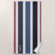 Serviette De Plage Monogramme moderne rayé noir blanc bleu rouge