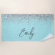 Serviette De Plage Monogramme Pailleté Argent Bleu Aqua Sarcelle