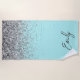 Serviette De Plage Monogramme Pailleté Bleu Aqua Turquoise Argent
