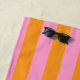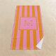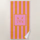 Créez votre propre serviette de plage personnalisée avec votre monogramme personnalisé initial et nom sur un arrière - plan rétro rayé en rose et orange esthétique