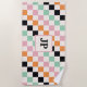 Monogram Retro Checkerboard Custom Monogrammed Beach Towels dispose d'un motif en damier coloré en vert, rose, orange, noir et blanc avec votre monogramme personnalisé. Personnalisez en modifiant le texte dans la zone de texte fournie. Un cadeau parfait pour anniversaire, Noël, vacances, vacances, croisières et plus encore. Conçu par ©2024 Evco Studio www.zazzle.com/store/evcostudio