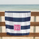 Serviette De Plage Monogramme rose et rayure marine