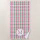 Cette mignonne serviette de plage monogrammée est dotée d'une motif classique en plaid dans les tons rose, vert et blanc. Personnalisez le monogramme rose et vert correspondant avec votre choix d'origine.