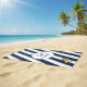 Serviette De Plage Monogramme sur mesure bleu et blanc de la marine n
