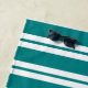 Prévoyez une serviette de plage turquoise et blanche pour votre maison de lac. Ajoutez votre nom de famille, votre nom initial et l'année établie à un monogramme nautique de pagaies croisées au-dessus d'un cercle de corde. La serviette de plage présente également des rayures turquoises et blanches.