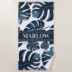 Serviette De Plage Monstera Leaf Navy & White Tropical Beach Towne