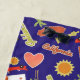 Cette serviette de plage colorée avec des images de l'état de la Californie éclairera vers le haut de n'importe quelle piscine de plage ou. Les images incluent une voiture de chariot, une image de statue d'oscar, un soleil orange, le contour de l'état, une voiture de sport de rouge, un coeur rose, le texte qui indique la Californie et Golden State, le drapeau d'état avec l'image traditionnelle d'ours, et des palmiers ! Les couleurs prédominantes sont vert orange, de chaux, et or, tout placé sur un arrière - plan bleu-foncé. Soyez sûr de voir les produits assortis dans notre magasin. l'art de *Clip utilisé dans cette conception est garanti les droits d'auteur par Encore Software, Inc., qui permet l'utilisation à ses concesseurs. Tous droits réservés.
