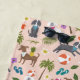 Cette serviette de plage amusante et colorée présente un motif de 3 chiens différents, équilibrant ananas et boules, pourchassant un lézard, portant des bandanas, sautant au-dessus des boules et ayant l'air super mignon ! La motif tropicale accueille également fleurs, palmiers, branches de palmiers, tongs et feuilles. modèle de texte inclus pour la personnalisation (monogramme)! La couleur arrière - plan peut être customisée à n'importe quelle couleur ! Oeuvre exclusivement créée par Mabel et Moe (pour Orabella Prints).