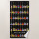 Guitares électriques, guitares acoustiques et guitares semi acoustiques motif dans des couleurs psychédéliques funtes avec nom personnalisé serviette de plage monogramme sur un arrière - plan noir. Entièrement personnalisable à l'aide du modèle de nom monogramme. N'importe quel guitariste ou musicien vous dira que vous ne pouvez jamais avoir à beaucoup de guitares. Ce design guitare coloré et amusant célèbre l'énergie et la variété de cet instrument musical merveilleux. Le cadeau idéal pour les guitaristes, musiciens et mélomanes. Guitare psychédélique pop art oeuvre originale de l'artiste Catherine Sweetman