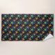 Serviette de plage motif moderne aux étoiles de mer noir et brillant.