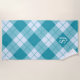 Serviette De Plage Motif plaid blanc et bleu turquoise