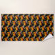 Amusez-vous au soleil et à la plage avec cette grande serviette de plage qui présente l'image d'une fleur d'oranger d'un Plante tropical Bird of Paradise imprimé en motif extensible sur un arrière - plan noir. Également appelée "Fleur de grue". Un joli design floral !