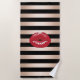 Serviette De Plage motif rose de rayures de noir d'or de lèvres