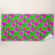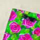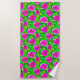 Serviette de plage dans un motif de rose fuchsia profond, aquarelle, roses avec des feuilles dans les tons vert émeraude