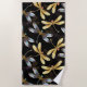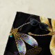 Motif sans couture avec or, bijoux, libellules brillantes avec ailes détaillées et pétillantes sur arrière - plan noir. libellule d'or.