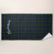 Élégante serviette de plage faite dans le classique clan écossais vert et bleu Murray tartan plaid motif. Personnalisez le grand texte blanc voûté en fonction de vos besoins.