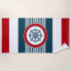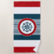 Design nautique avec décoration de boussole en forme ronde sur bleu, rouge et blanc rayé arrière - plan