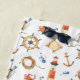 Il s'agit d'une serviette de plage motif nautique avec ancres, phares, crabes, cartes et beaucoup d'autres articles nautiques mignons. Ce design est parfait pour votre piscine ou vos vacances.