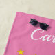 Né pour être un cadeau unique de serviette de plage personnalisée rose unicorne. Serviette de plage personnalisée au design animal imaginaire et à l'élégante typographie du script de brosse. Ajoutez votre propre citation amusante, votre vrai nom ou votre monogramme. Une idée cadeau d'anniversaire unique pour les filles, la fille, la femme, la mère, la grand-mère, l'amie, le cousin, la soeur, la mariée, etc. Des accessoires de plein air amusants pour la plage, le voyage ou la piscine. Illustration de cheval de conte de fées avec cheveux ondulés, étoiles et couleur arrière - plan personnalisable. Des cadeaux pour elle.
