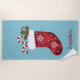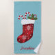 Serviette De Plage Noel Rouge Sur Bleu Avec Texte Personnalisé
