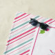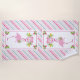 Une serviette de plage de noël tropical fantastique. Un flamant rose fantaisie avec une jambe levée. Portant un chapeau de santa rose et un saint saisonnier. Holly avec des baies ornent également les coins. Bouquet fleuri avec sucres de canne au-dessus de sa tête.arrière - plan rayée sucre de canne rose et vert.