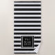 Serviette De Plage Nom de famille Monogram Marine Black White Stripe