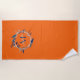 Serviette De Plage Nom de la couronne orange vif et bleue avec Monogr