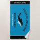 La conception personnalisée des serviettes de bain de l'équipe de natation pour les nageurs comprend du texte personnalisé pour le prénom et le nom du nageur, le nom du club de natation, la mascotte ou autre texte. Ajoutez le logo de votre équipe à l'image de l'espace réservé aux dauphins. Le jeu de couleurs bleu océan, noir et blanc peut être modifié pour être coordonné avec les couleurs de votre équipe. Veuillez nous contacter à kathleen@plushpaper.com pour toute question de conception.