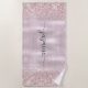 Serviette de plage personnalisée avec monogramme ou signature en écriture manuscrite métallisée rose gold pailletée Girly Glam. Ce design présente votre prénom dans une jolie typographie manuscrite avec des fioritures (ou calligraphie) sur un fond rose poudré avec un effet métallisé rose gold et une bordure pailletée glamour. Celles-ci sont faciles à personnaliser. Cadeau de pendaison de crémaillère élégant et féminin, également pour un anniversaire, la fête des mères, un mariage, une soirée d'anniversaire pour les 16 ans, une soirée d'enterrement de vie de jeune fille, une douche de mariée, pour une fête de fin d'études et c'est pour la fille qui aime les choses uniques et scintillantes.